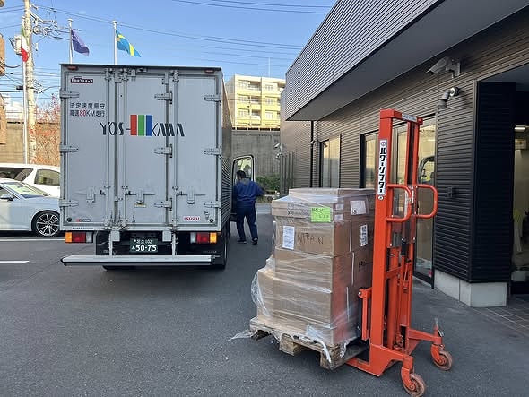 新製品の昇降リフト装置取付車両入庫