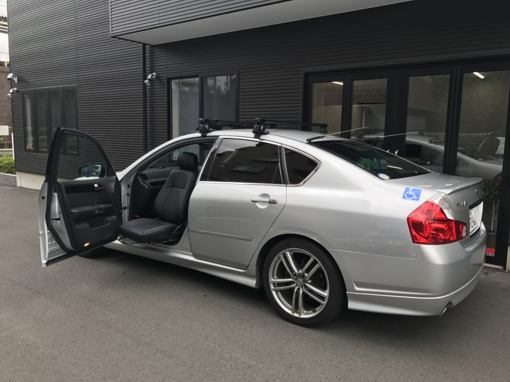日産 フーガの助手席にスウェーデン BraunAbility社製回転シート ターンアウトを導入。
