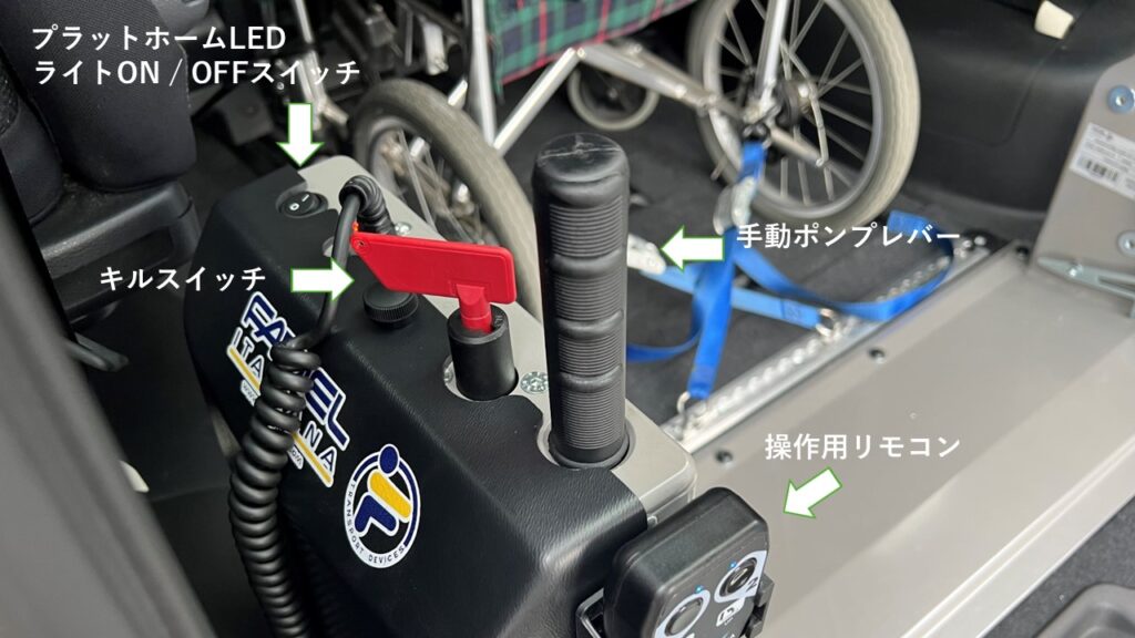 乗らなくても、車いすの方を安定した状態で乗車させる事が可能です。