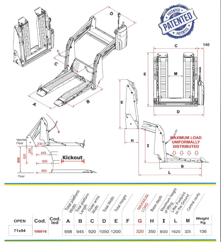 2. 昇降リフト装置の本体重量が100kg程度と軽量です。