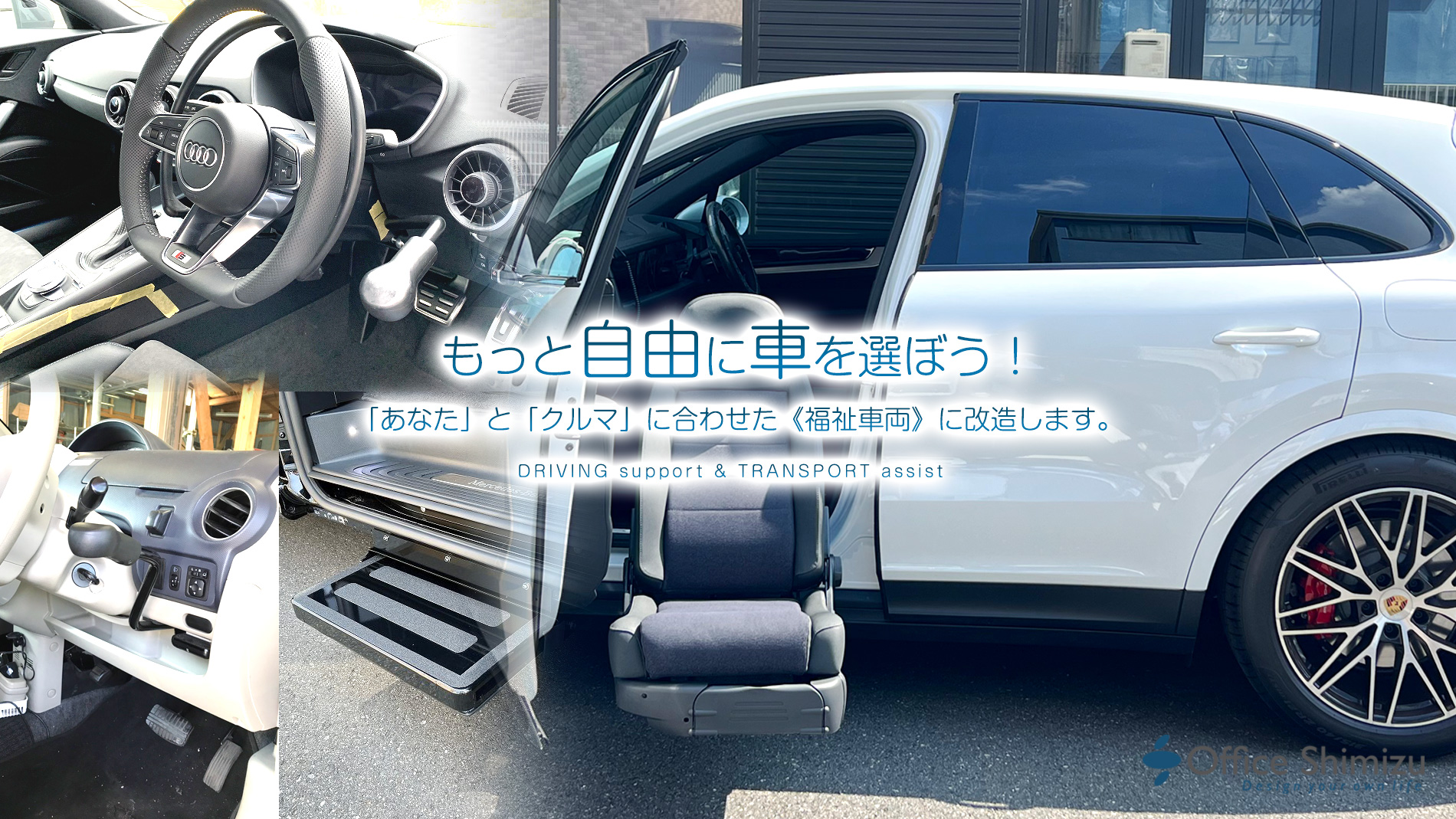 私たちオフィス清水は「乗る人・乗りたい人・乗せたい人」に合わせた車づくりを提案しています。