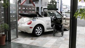 福祉車両改造事例 アウディ TT に リングタイプの手動運転装置を後付け改造